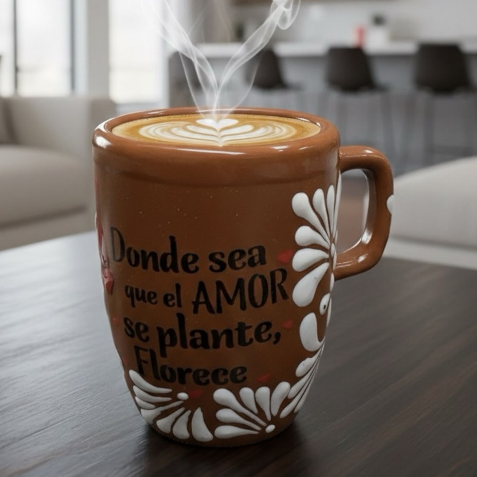 Talavera Donde Sea Amor Mug | Brown & White | 5x3.5” 14oz Approx | Lead Free